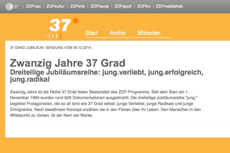 Zwanzig Jahre 37 Grad feierte die Doku-Reihe im November 2014. Mit insgesamt 24 Doku-Reportagen führt Sibylle Trost die Liste der 37-Grad-Autoren an. Sie begann 1995 mit dem Portrait des querdenkerischen Industriellen und Metzgermeisters Karl Ludwig Schweisfurth als „Mann mit dem Schinken am Hut“. Mit diesem Film wurde Trost 1996 für den Axel-Springer-Preis für junge Journalisten nominiert.